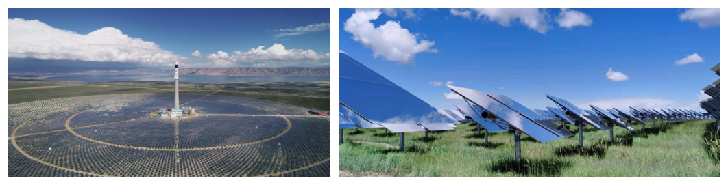 在青海省海西州德令哈市,先后建成的青海中控德令哈10MW光热电站及50MW光热电站,总占地面积约2.72平方公里;几年前还是一片浩瀚荒芜的戈壁滩,如今在数万面蓝色定日镜的守护下,迸发出“勃勃生机”。