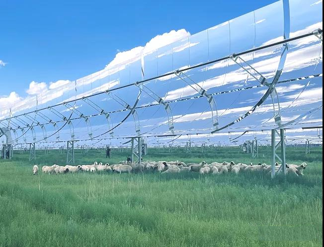 在青海省共和县的塔拉摊上,曾经的荒漠戈壁已完全改变了模样,满眼可见的碧草、绿树、羊群……除了光伏电站外,还有一座耀眼夺目的大型光热电站。