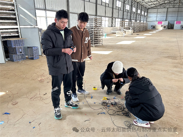 在参观考察的同时,实践团队也参与到了科技小院研究人员的实际测试工作中。为了优化干燥效率,需要检测藏药干燥过程中链式干燥箱各个位置的空气温度和湿度,干燥箱中的各个位置都需要安装测空气温度的热电偶线和测空气湿度的湿度传感器;经过多次尝试后,同学们正确处理并安装了热电偶线,使其能够准确测量空气温度。大学课本里晦涩难懂的专业知识变得鲜活起来。