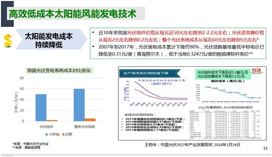 其中,高效低成本太阳能风电发电技术中包括太阳能热发电技术。通过调研发现:目前太阳能热发电的成本还是相对比较高的,如何降低成本是需要解决的。总的来说,主要有两个途径降低成本,一是通过技术创新的途径来解决,二是在生产上进一步降低成本,包括材料的应用及加工的工艺。