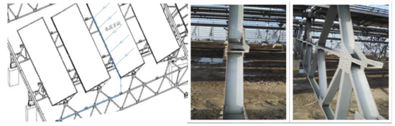 依据镜场结构的特点和优势,开发了空挡区域(吸热器顶部位置)安装光伏电池组件技术,综合利用太阳能资源。