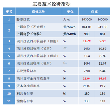 按机组年利用小时4460h进行经济评价,按上网电价为:含税电价980元/MWh,测算得项目投资内部收益率(税前)为11.78%。此时,总投资收益率为7.98%,项目资本金内部收益率21.04%,资本金净利润率为26.07%。