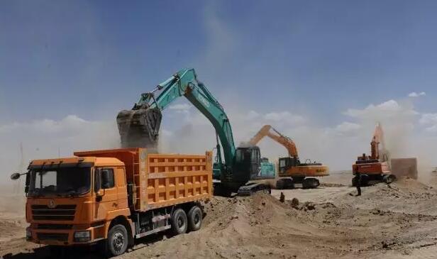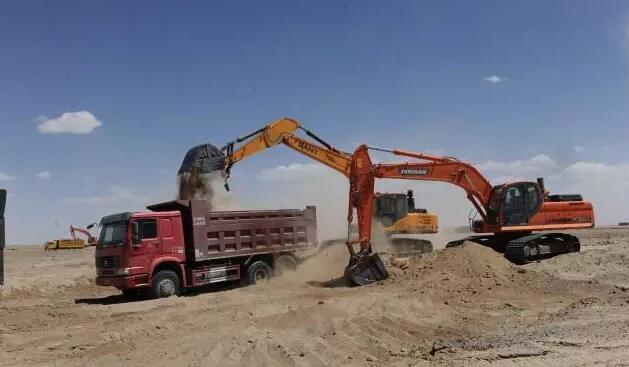 据记者了解,这几天,阿克塞县境内出现了高温酷热天气,县城境内最高气温达到38度以上,地面温度达到了72.5度。在当金山南,滨海光热50兆瓦槽式高温熔盐光热发电项目建设现场,中午时分的天气异常干热,刮起风来更是漫天尘土,闷热难耐且能见度极低。7月11日中午,工人们吃过午饭稍作休息后,便赶往工地开始工作,大家在高海拔地区抗风沙、冒酷暑对挖掘机、货车等进行保养检修后,撸起袖子大干起来,数十台挖掘机在建设场地间隆隆作响,将挖起的砂石料一斗一斗装进车厢,装满砂石料的货车来来往往,不停的将砂石料拉运到目的地。