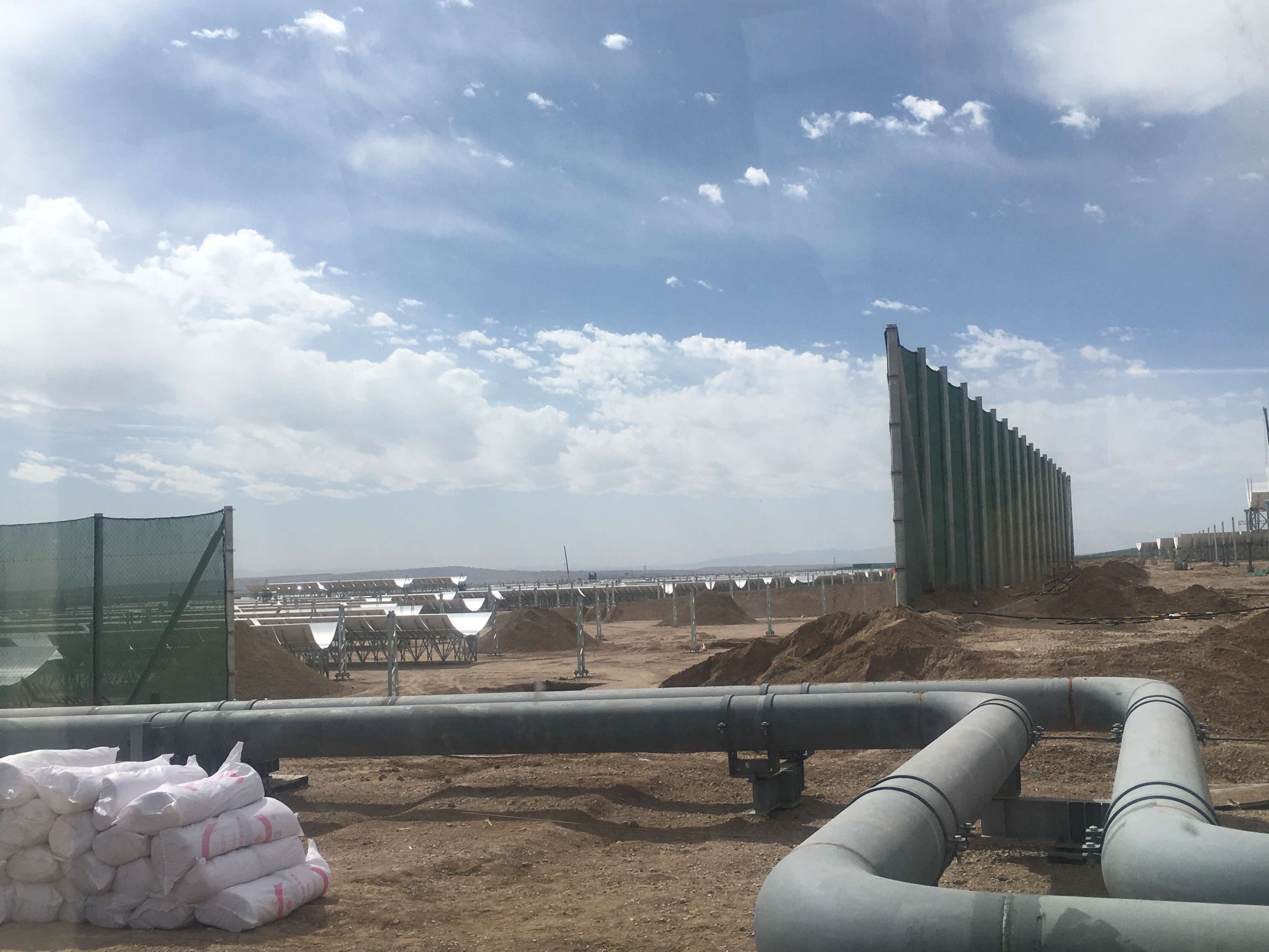 9月23日下午,记者在中广核德令哈50MW槽式光热发电示范项目建设现场看到:该项目正在紧张有序地推进中,在整体系统构成上已初具雏形。