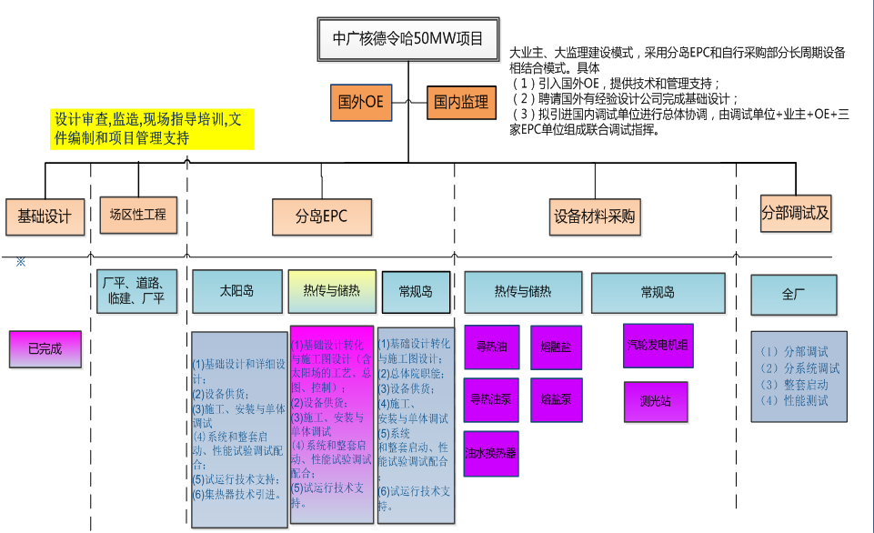 入选国家能源局首批光热发电示范项目的中广核德令哈50MW槽式光热发电工程是国内第一个正式开工建设的大型商业化槽式光热发电项目,也是国内第一个亚洲开发银行提供贷款支持的光热发电工程。