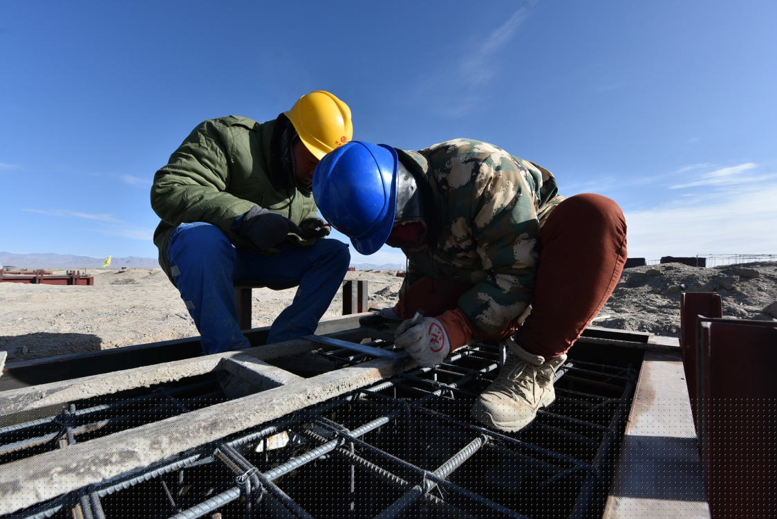 海拔3000米的阿克塞四十里戈壁太阳能热发电基地最低气温已经下降到了零下20多度,入驻基地企业的员工们冒着严寒,克服困难,为将“风吹石头跑”的戈壁,发展成“点亮万家灯火”清洁能源基地献智出力。