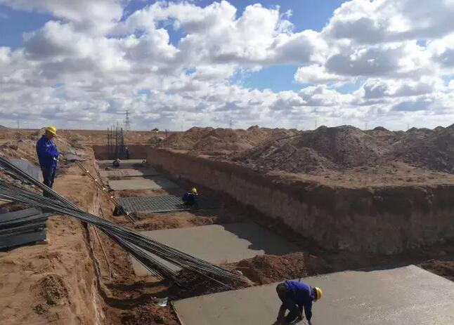 近日,入选我国首批光热发电示范项目的内蒙古中核龙腾新能源有限公司乌拉特中旗导热油槽式 10 万千瓦光热发电项目 的现场建设工作正在紧张有序地推进,目前该项目场平工作已经完成95%左右,2万平方米安装厂房基础已经完成,12月份将完成结构安装,该项目也是继中广核德令哈50MW槽式导热油光热发电项目之后,进度最快的槽式光热项目之一。