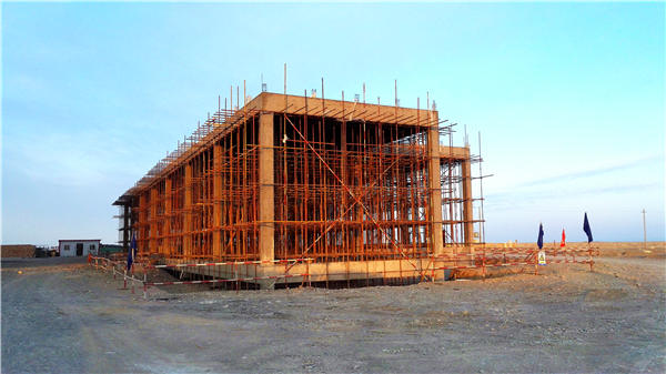 虽然中国的西部目前是“冰霜覆地禾垂头,泥土僵硬水不流”,却挡不住建设者对光热事业的执着与热忱。2018年1月26日,北京首航艾启威节能技术股份有限公司(下文简称首航节能)敦煌100MW熔盐塔式光热发电示范项目建设现场传来项目最新进展:吸热塔吊车安装200米,塔内钢结构安装到60米;主厂房、辅助车间结构封顶;镜场立柱安装1100个;冷罐基础陶粒回填完成。