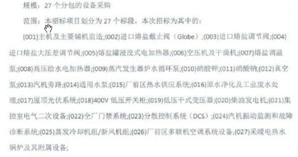 2、项目名称:中电工程哈密塔式50MW光热发电项目第三批辅机设备采购