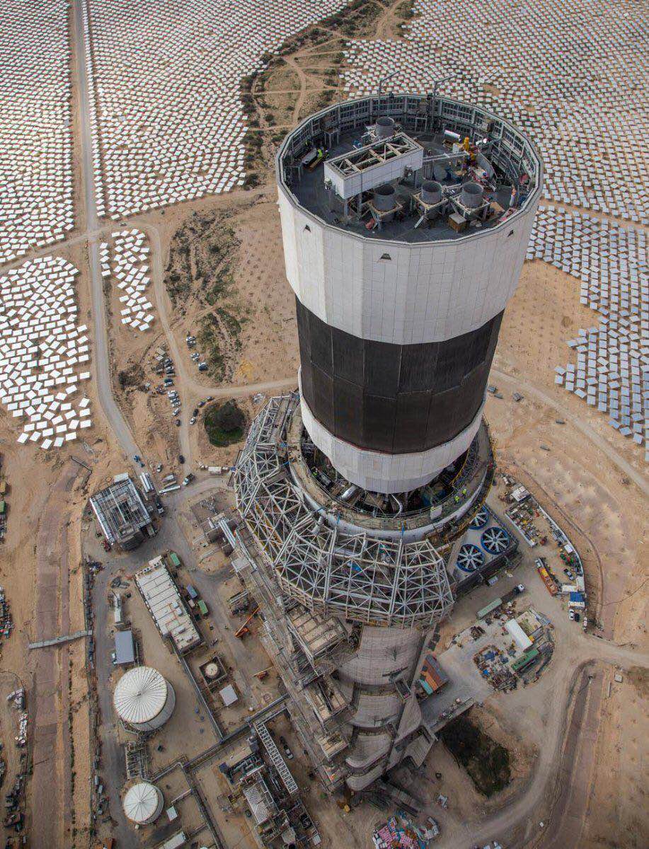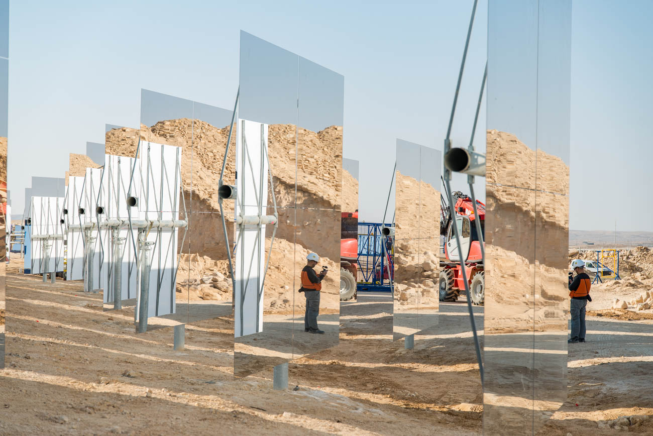 Ashalim Plot B塔式光热电站包括5万多面计算机控制的定日镜,吸热塔高250米,采用水作为传热介质,产生的过热蒸汽进入汽轮机机组发电。定日镜驱动装置和电力设置通讯由Tadiran Batteries专有TLI 可充电电池供能。
