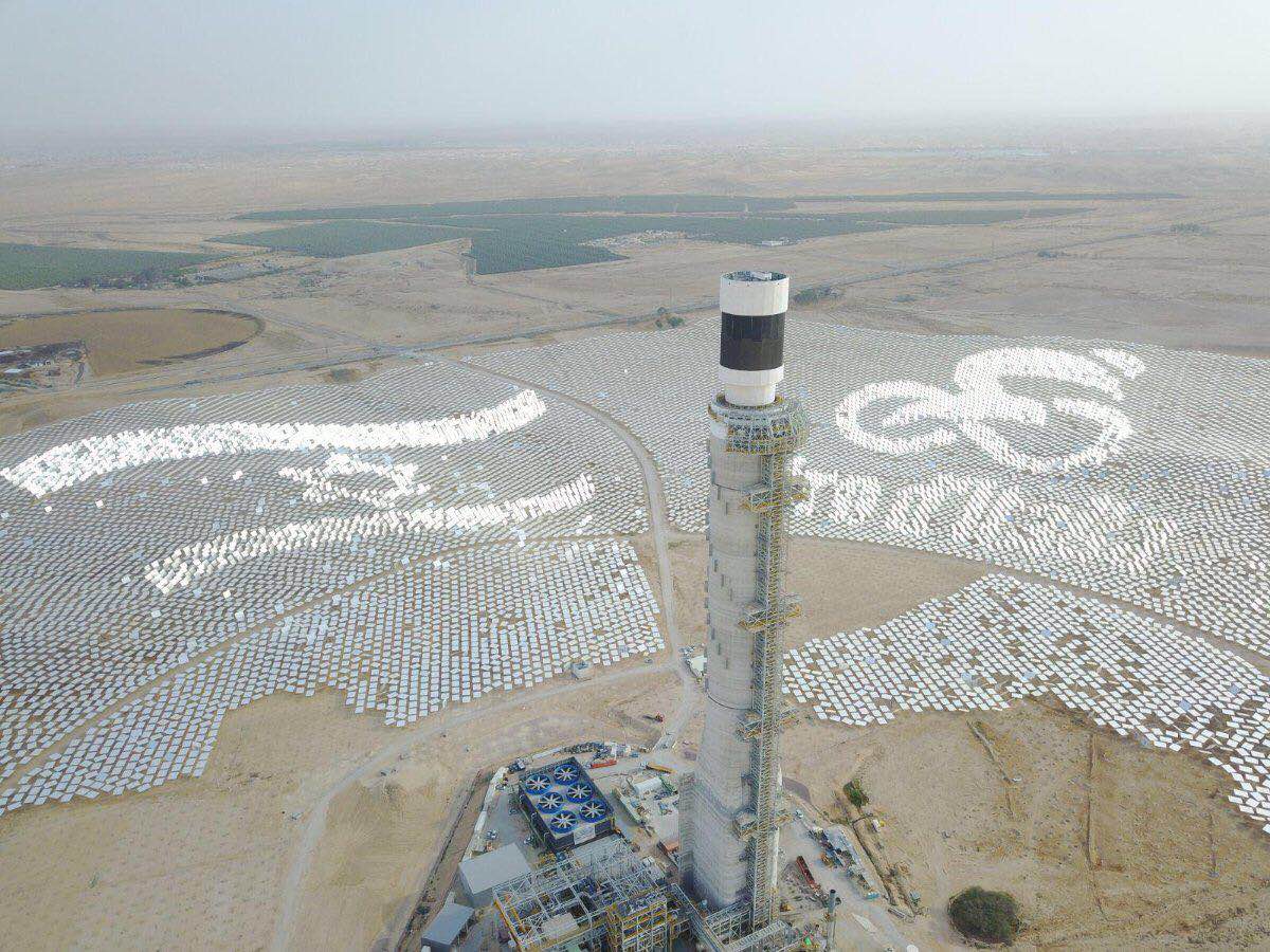 近日,在第一次将所有定日镜向吸热器表面汇聚太阳光后,以色列121 MW Ashalim Plot B塔式太阳能热发电站的吸热器上第一次获得能流,亮起来了。这就像乐队指挥(控制室)举起他的指挥棒,将所有乐器带动起来(太阳场和动力模块),产生了美妙的音乐(聚光能流)。作为电站调试的重要步骤,吸热器和定日镜场联动调试将为电站成功投运奠定基础,预计未来几个月内电站可以并网发电。