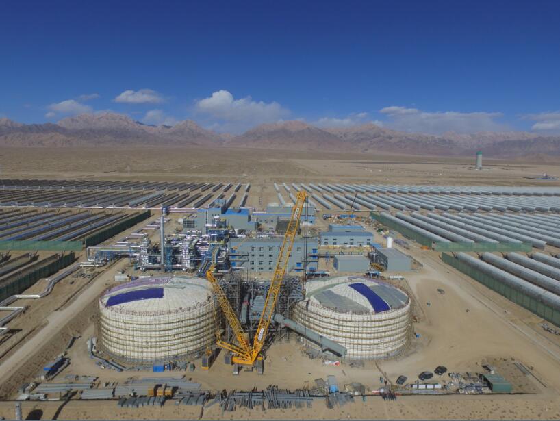 目前,正在进行回路出口温度调整、调试工作,及太阳岛、常规岛、传储热岛三岛联合调试配合工作。相关各方正在有序地稳步推进各项建设进程,现已取得了阶段性的建设成果,预计将成为中国首个并网投运的光热示范电站。(感谢中广核新能源德令哈公司提供电站照片)