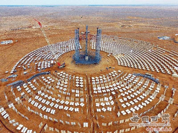 据每日甘肃网报道:作为国家首批光热发电示范项目之一的玉门鑫能50MW光热发电项目,日前建设进展顺利,项目1号模块土建已完工,二次塔格构柱吊装全部完成,球形网架已组装完毕,正在进行焊接安装,定日镜已安装完成,拟于年底建成并网发电投入运营。