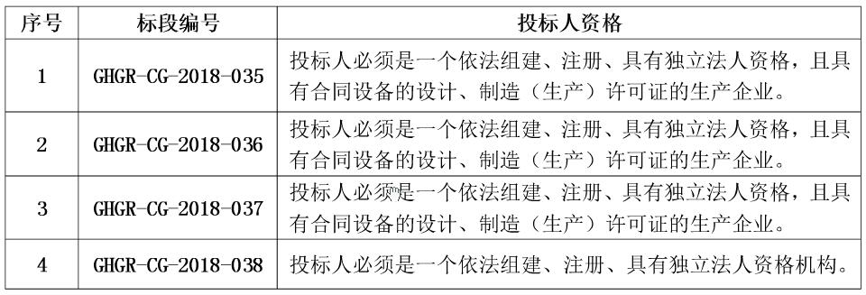 招标范围:本次招标将由中标人承包提供本招标公告中所规定的设备,详见以下招标范围信息表,包括设备项目的设计、制造、出厂前的试验、包装、运输、现场交接;提供安装和调试指导、现场技术培训;指导现场试验和验收;负责产品资料文件编辑和提交等。