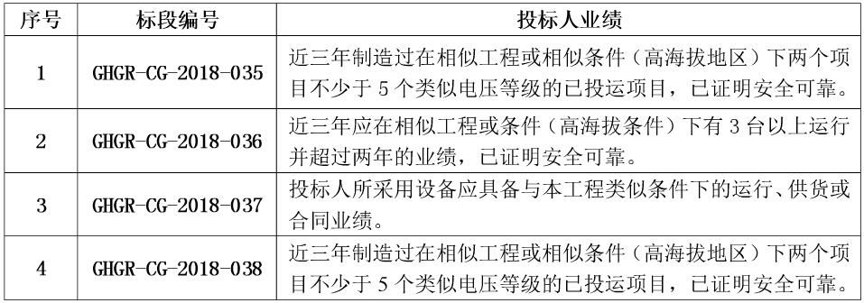 对投标人的业绩要求如下: