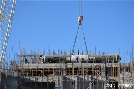 3月14日,由中国能源建设集团安徽电力建设第一工程有限公司(简称中国能建安徽电建一公司)承建的中电哈密熔盐塔式50MW光热发电项目部汽包顺利吊装就位。