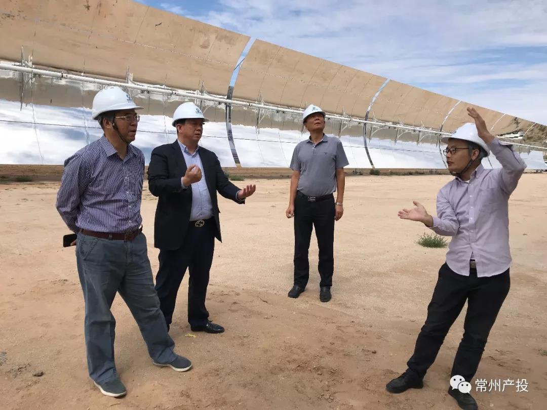 2019年8月21日至24日,常州产业投资集团有限公司(简称产投集团)党委副书记、副总经理查道寅,副总经理薛国俊一行5人前往乌拉特中旗,对参股企业常州龙腾光热科技股份有限公司(以下简称“龙腾光热”)光热示范项目进行调研。
