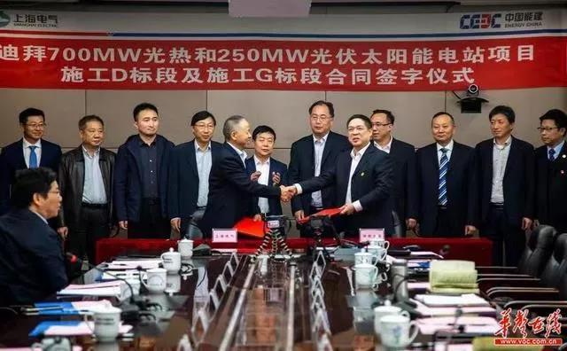 据华声在线消息:2019年11月21日,中国能源建设集团湖南火电建设有限公司(简称湖南火电)在长沙与EPC总承包方上海电气集团签订阿联酋迪拜950MW光热光伏混合电站项目施工D标段及施工G标段合同。