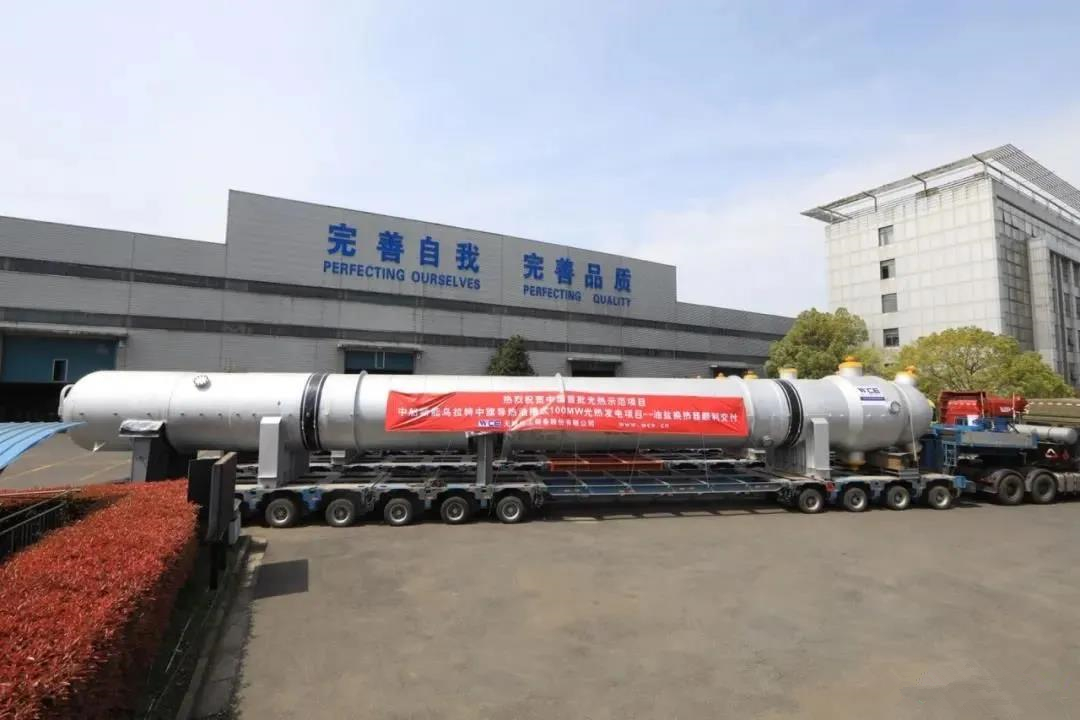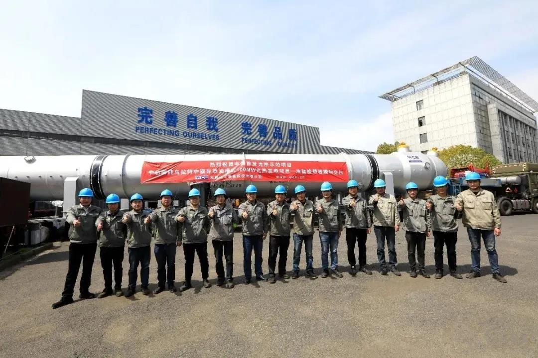2020年3月24日,无锡化工装备股份有限公司(简称“无锡化工”)承接的乌拉特中旗导热油槽式100MW光热发电项目中的核心设备——6台油盐换热器顺利完工交付。