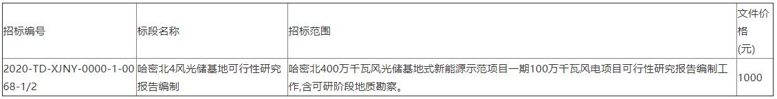 国家电投哈密北400万千瓦风光储基地式新能源示范项目一期100万千瓦风电项目可行性研究报告编制招标公告