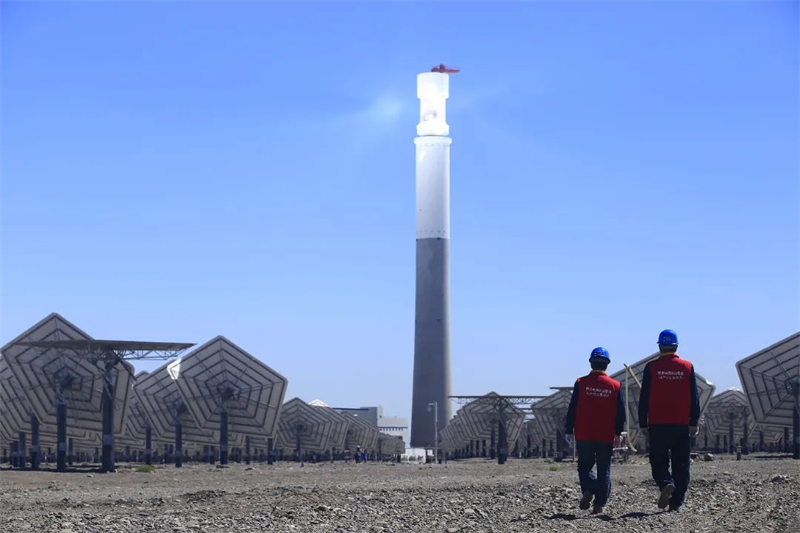 哈密伊吾县供电公司党员服务队队员到国家能源示范项目塔式熔盐光热电站开展志愿服务活动。陈建军 摄