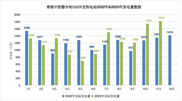 年末冲关季,青海中控德令哈50MW光热电站频传佳绩,截至11月30日24时,电站当月发电量达到1818万kWh,创投运以来月度发电量新高;2023年1~11月累计发电量达到1.3753亿kWh,再创电站投运以来历年同期的最高纪录。