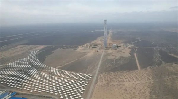 图:正在建设的塔式熔盐光热电站(无人机拍摄)