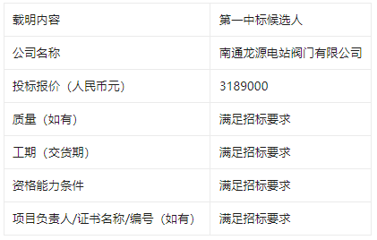 烟台龙源电力技术股份有限公司国能河北龙山600MW亚临界火电机组“抽汽蓄能”储热调峰灵活性改造项目高温高压阀门及其执行机构(二次挂网)评标工作已结束,现按照相关规定将采购结果公示如下: