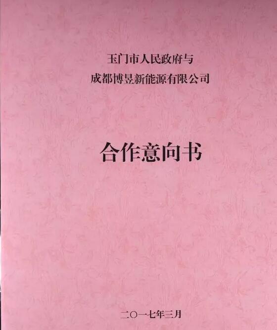 3月14日,成都博昱新能源有限公司与甘肃省玉门市政府签署300兆瓦太阳能热发电投资合作意向书。意向书是博昱新能决策层综合考虑各方面因素和公司长远战略布局,经公司董事会讨论,确定了公司太阳能热发电布局甘肃玉门的决策。此次与玉门市政府关于太阳能热发电合作协议的签订,表明博昱新能看好太阳能热发电产业并且积极参与太阳能热发电产业的决心!
