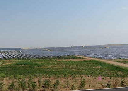 该项目积极应用“治沙+种草+养殖+发电+扶贫”五位一体的复合生态太阳能治沙新模式,发挥项目平台优势,租用当地农牧民未利用荒沙地78000亩进行项目建设,太阳能光伏发电发热的同时,光伏区周边建设了幅宽500米的防风阻沙林带,设备中间套种甘草中药材等沙漠经济植物,并养殖绵羊、灰雁等,招聘当地农牧民参与种植、养殖和光伏板清洁等工作,既有益于周边农牧民稳定增收,又有益于沙漠治理,经济效益和社会效益显著。