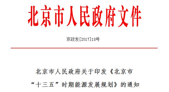 北京市人民政府关于印发《北京市 “十三五”时期能源发展规划》的通知 |