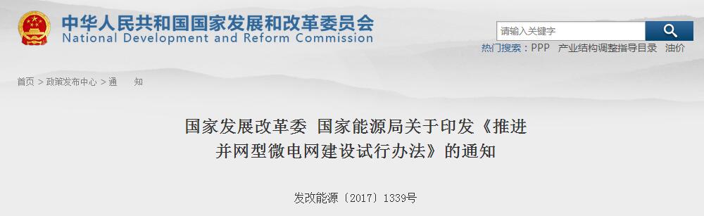 国家发改委、能源局印发《推进并网型微电网建设试行办法》