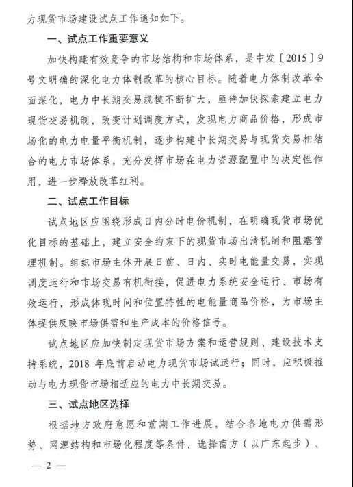 国家发展改革委力公厅、国家能源局综合司于8月28日联合下发了《关于开展电力现货市场建设试点工作的通知》特急文件,通知中称,2018年底前启动电力现货市场试运行,积极推动与电力现货市场相适应的电力中长期交易。