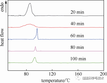 图3:在720 ℃下保温不同时间后各样品的升温DSC曲线