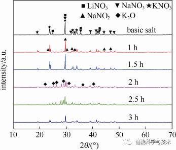(3)硝酸盐分解产生亚硝酸盐和碱金属氧化物是导致样品固相线温度降低的主要原因。