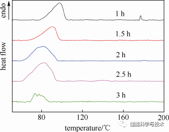 图1:基盐及在520 ℃下保温不同时间后各样品的升温DSC曲线