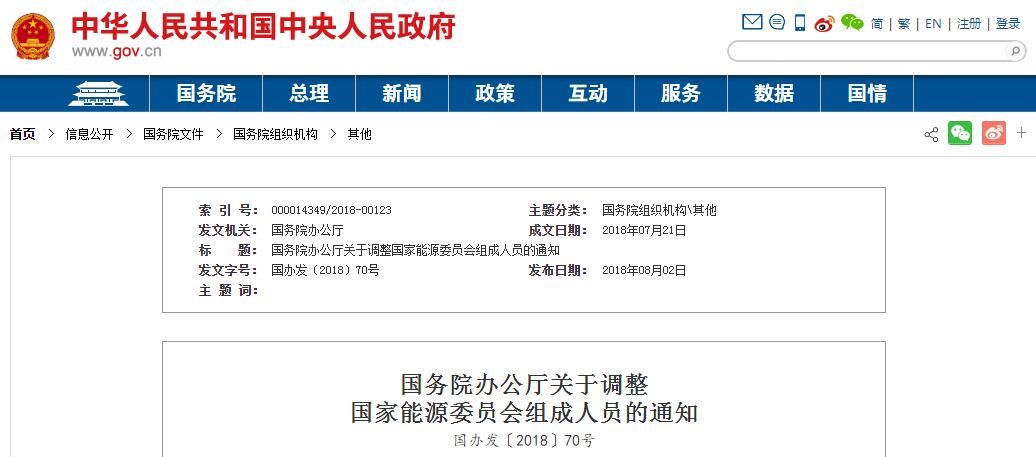根据机构设置、人员变动情况和工作需要,国务院决定对国家能源委员会组成单位和人员进行调整。现将调整后的名单通知如下: