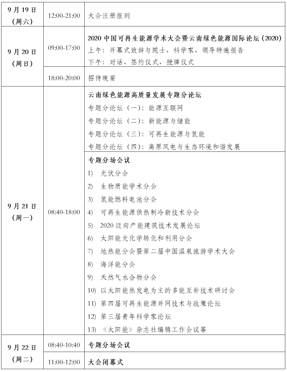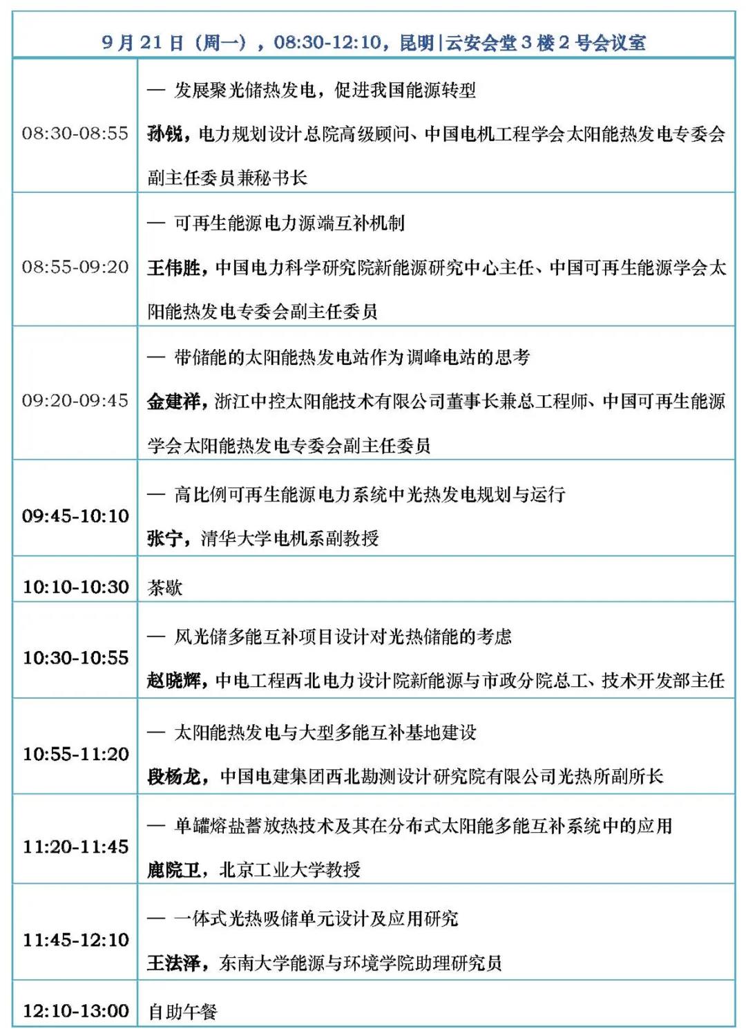 2020中国可再生能源学术大会暨云南绿色能源国际论坛定于9月20~22日在云南昆明举行。其中,学会太阳能热发电专委会将于9月21日上午举行专题分会:以太阳能热发电为主的多能互补技术研讨会。