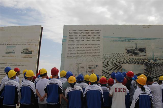 在大成聚光热电有限公司,讲解员向学生们讲述了高温熔盐线性非涅耳聚光集热技术原理、介质、发电能力,了解兰州大成敦煌熔盐线性菲涅耳式50MW光热发电示范项目运行情况,及光热发电的稳定性,可替代火电作调峰电源,也可与现有光伏电站和风力发电站等可再生能源电源协同使用,进一步提高可再生电力供应的稳定性和可调度性。