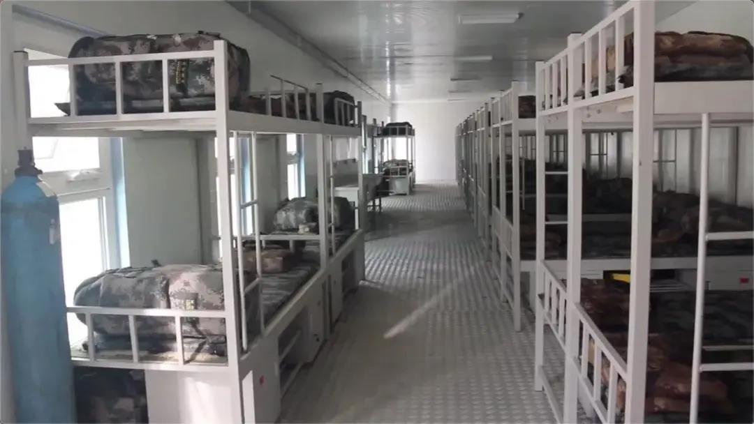 3、所有部件在工厂预制生产,依托现代化物流,配送至建设点位。官兵徒手就能快速搭建可灵活组合,成为班、排、连、旅等各类营地。