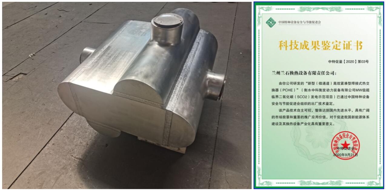 执行董事、总经理苏斯君介绍,近年来,兰石换热与中国科学院工程热物理研究所等科研院所及相关企业合作完成了“新型(微通道)高效紧凑型焊接式热交换器(PCHE)”的研制,并将其应用到超临界CO₂发电系统,并通过了由中国特种设备安全与节能促进会组织的技术鉴定,得到了鉴定专家的一致肯定:PCHE产品技术可控,整体达到国内先进水平,具有广阔的市场前景和重要的推广应用价值,对于促进我国新能源体系建设及其换热设备产业化具有重要意义。