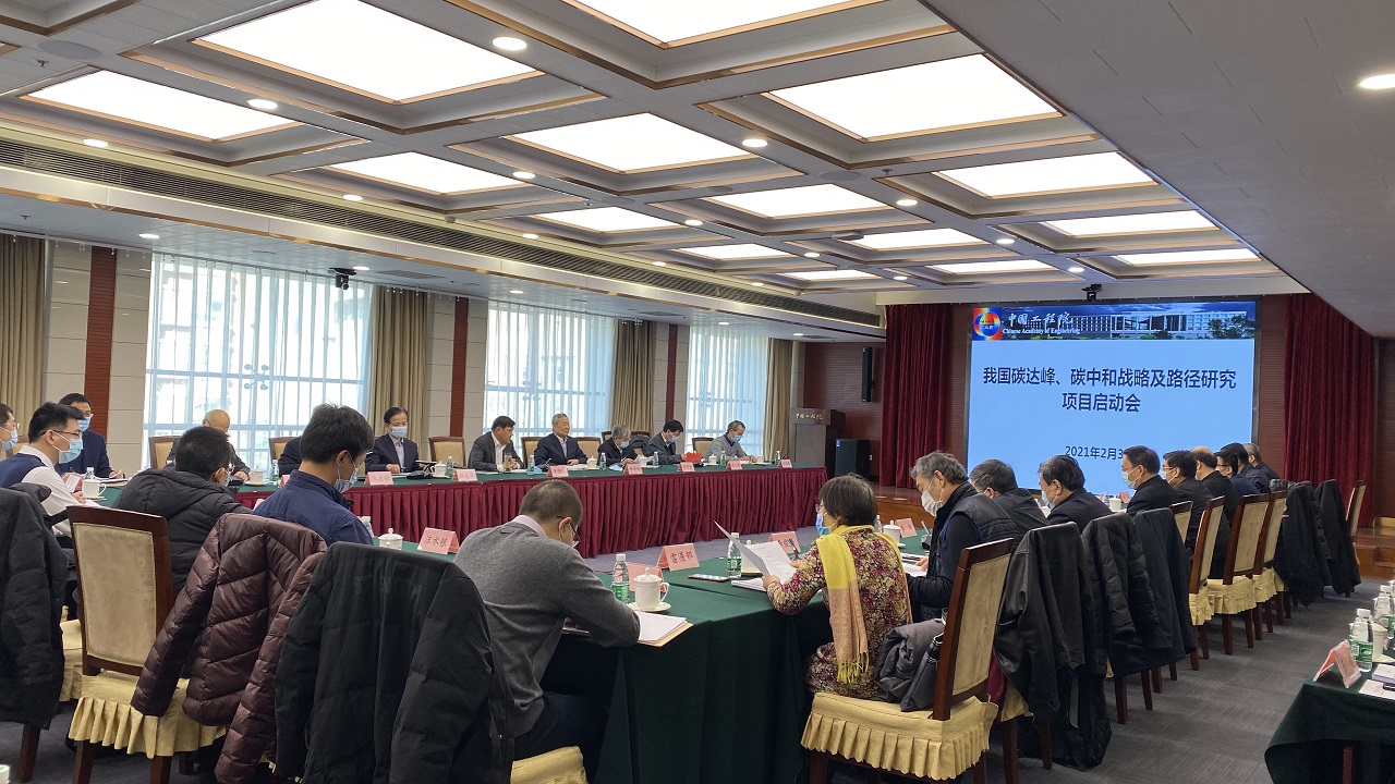 2021年2月3日,“我国碳达峰、碳中和战略及路径研究”重大咨询项目启动会在中国工程院召开。中国工程院院长李晓红、原副院长杜祥琬作为项目负责人共同主持会议。中国工程院副院长钟志华、秘书长陈建峰,以及邬贺铨、苏义脑、黄其励、张玉卓、舒印彪、江亿、李阳、戴厚良、王金南等院士和项目组成员参加会议。