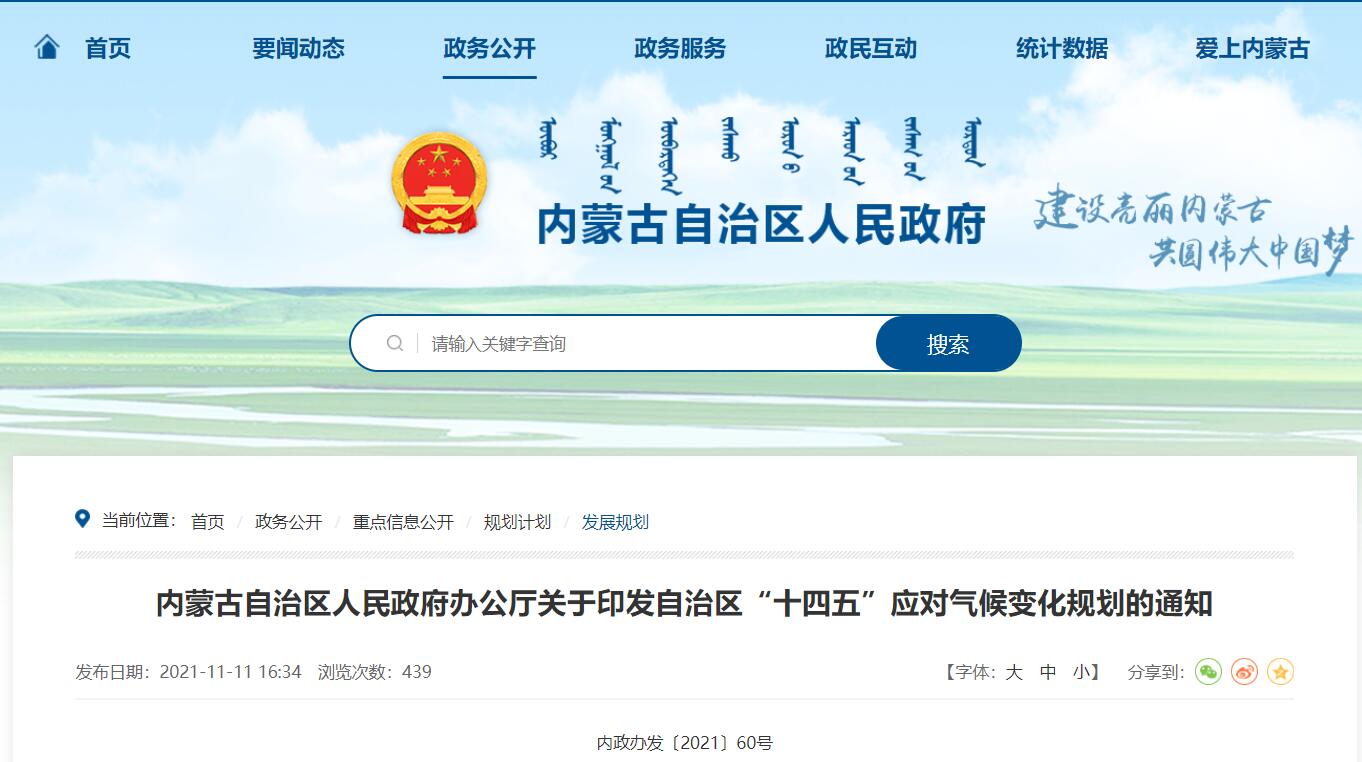 经自治区人民政府同意,现将《内蒙古自治区“十四五”应对气候变化规划》印发给你们,请结合实际,认真贯彻落实。