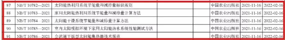 ◐ 近日,国家能源局批准发布326项能源行业标准,其中河北道荣新能源科技有限公司参编的五项标准成功获批。公告显示,道荣新能源获批的五项标准分别为NB/T10782-2021太阳能热利用系统节能量和减排量标识规划、NB/T10783-2021家用太阳能热利用系统节能量和减排量计算方法、NB/T10784-2021太阳能干燥系统节能量和减排量计算方法、NB/T10785-2021室内太阳模拟环境下家用太阳能热水系统性能测试方法和NB/T10786-2021全流道平板型太阳能集热器技术规范。