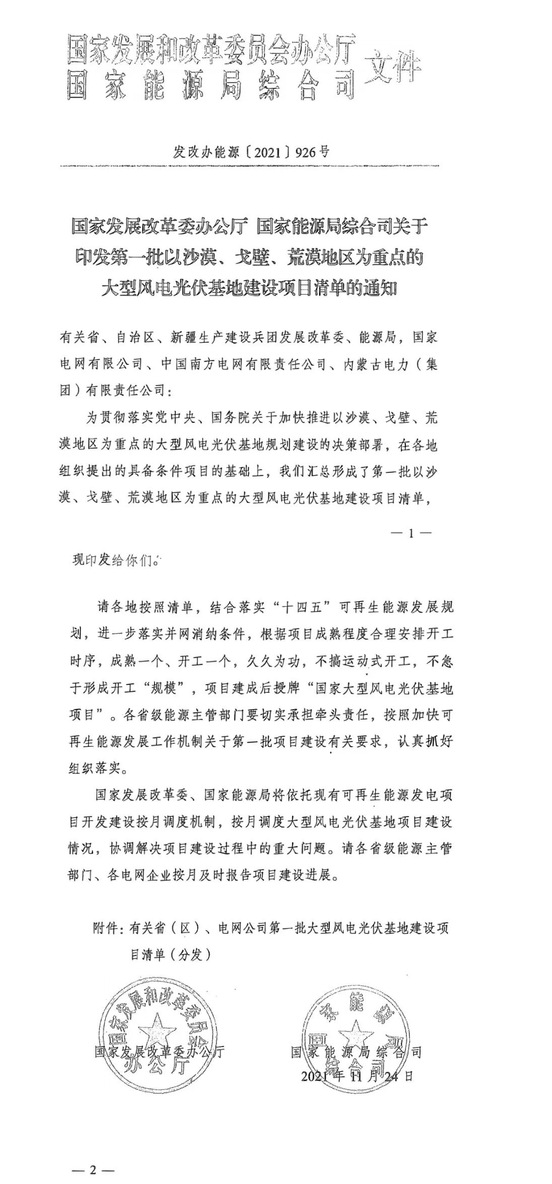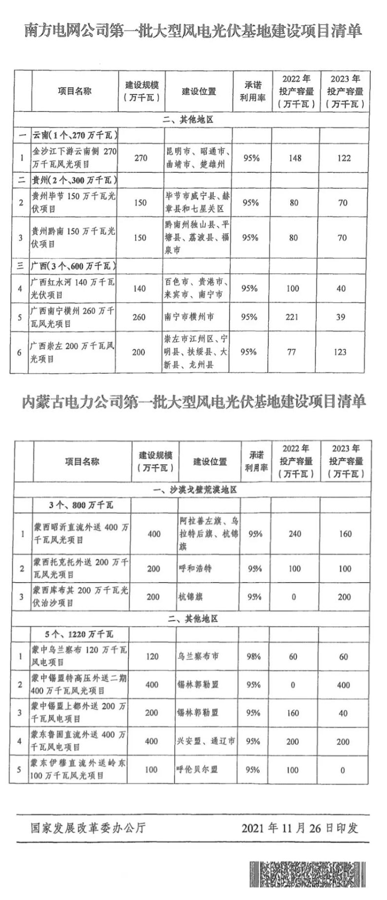 近日,各省已收到国家能源局、国家发改委印发的《第一批以沙漠、戈壁、荒漠地区为重点的大型风电、光伏基地建设项目清单的通知》,规模总计97.05GW。