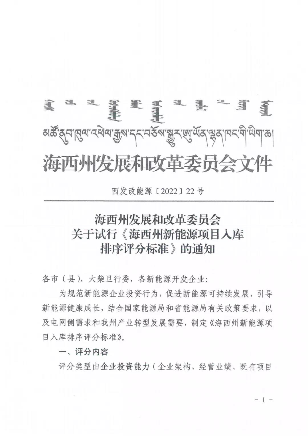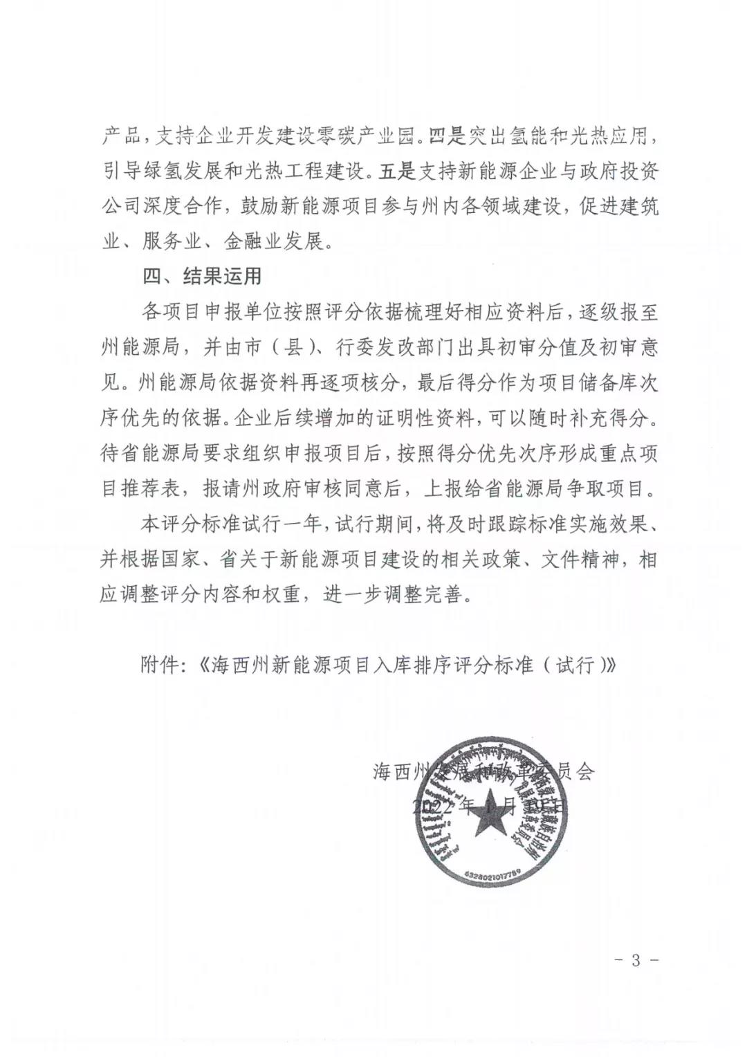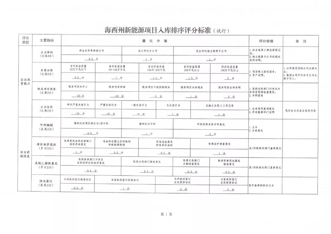 近日,青海海西州发改委印发《新能源项目入库排序评分标准》,通过八大类35小项的评分类型对新能源项目进行评分排序。