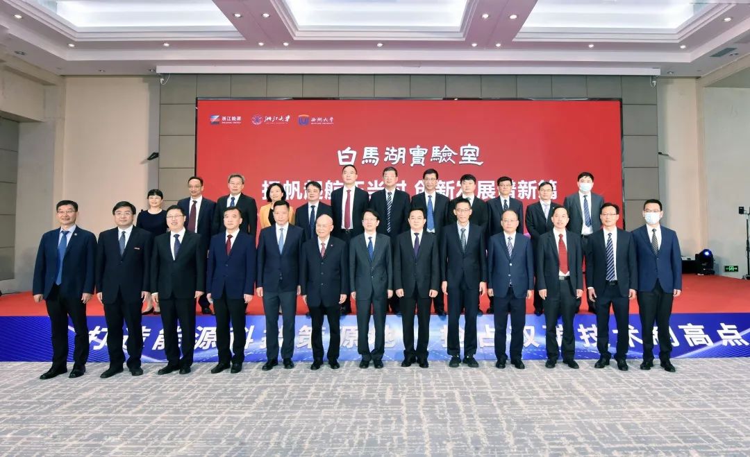 浙能集团党委书记、董事长胡仲明致辞表示,成立白马湖实验室是浙江贯彻习近平总书记关于加快建设国家实验室体系重要指示精神,落实省委“建成10个高水平省实验室”决策部署的实际行动,是加快推进科技强省、创新强省的具体举措,将举全集团之力,与浙江大学、西湖大学一起,积极加快推进实验室各项工作,积极推动创新平台与市场主体紧密对接,助力创新链、产业链深度融合,为我省打造三大科创高地、抢占碳达峰碳中和技术制高点提供能源支撑。