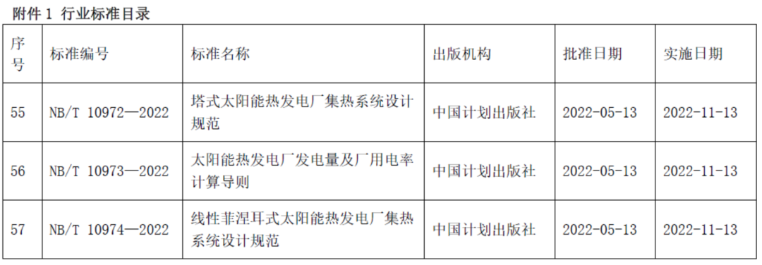 6月7日,国家能源局发布2022年第4号公告,批准发布209项能源行业标准,其中包括《塔式太阳能热发电厂集热系统设计规范》《太阳能热发电厂发电量及厂用电率计算导则》《线性菲涅耳式太阳能热发电厂集热系统设计规范》三项太阳能热发电行业标准和。该三项标准均由太阳能光热联盟副理事长单位——中国电力工程顾问集团西北电力设计院有限公司主编,将于2022年11月13日实施。