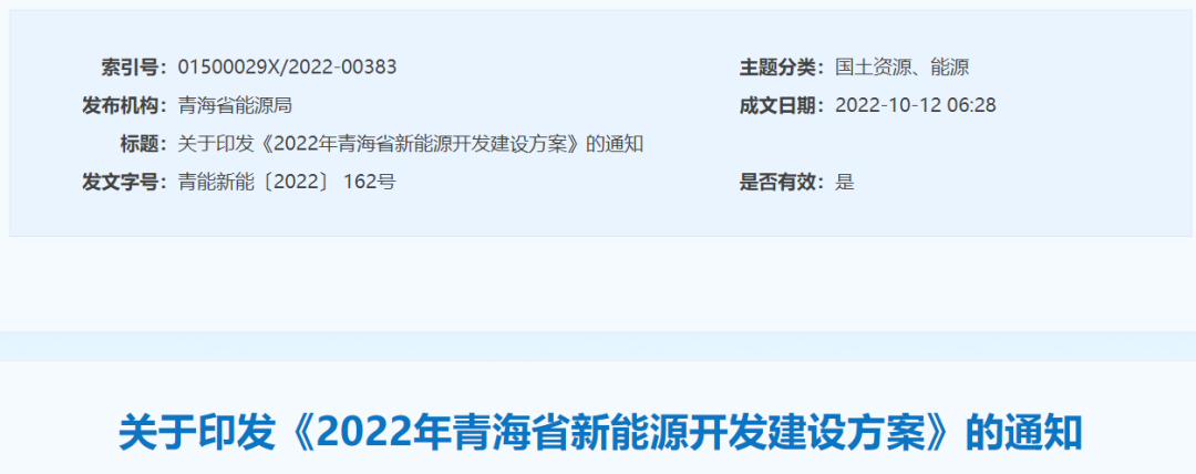 10月12日,青海省能源局发布《2022年青海省新能源开发建设方案》。《方案》公布了2022年新能源建设计划。