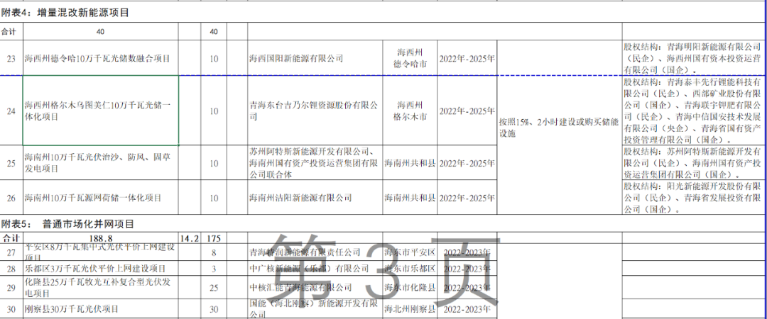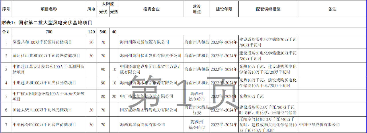 1、中能建江苏设计院共和100万千瓦源网荷储项目(光伏90万千瓦+光热10万千瓦,建设或购买电化学储能10万千瓦/20万千瓦时),投资企业为:中国能源建设集团江苏省电力设计院有限公司;